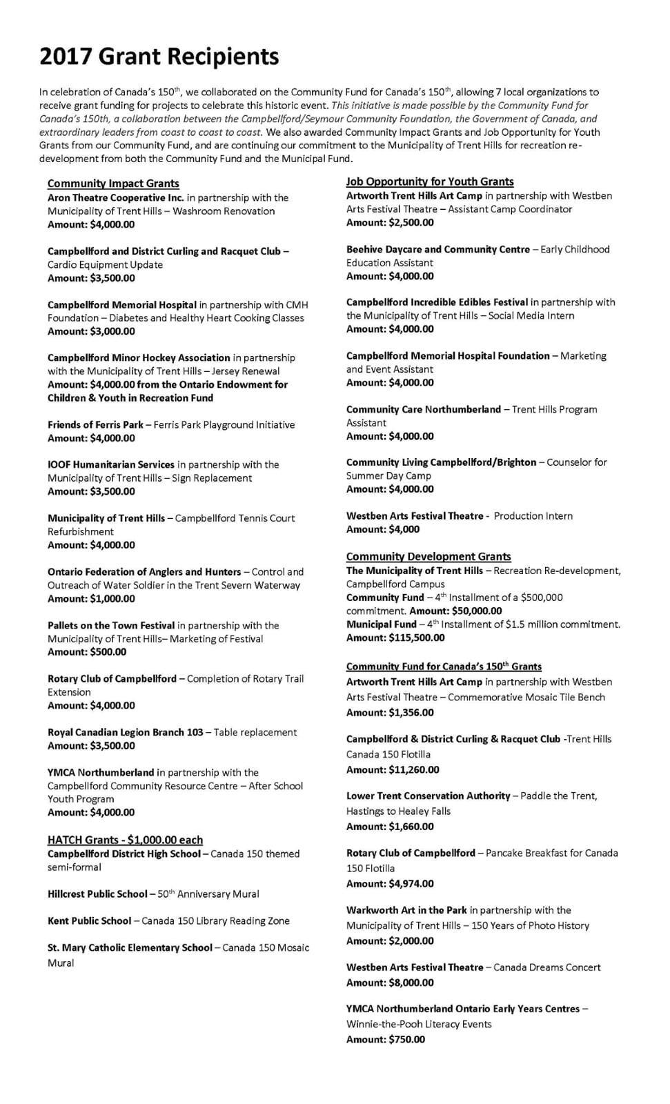 To view PDF's of the diverse and unique nature of the Community Foundation projects completed since 2003, click on the following links: